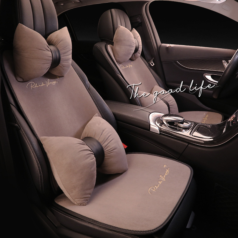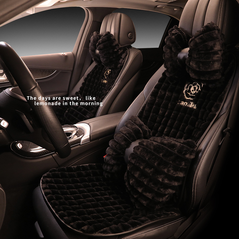 山茶花轻奢极简风网红毛绒汽车坐垫秋冬季舒适保暖加厚座垫三件套